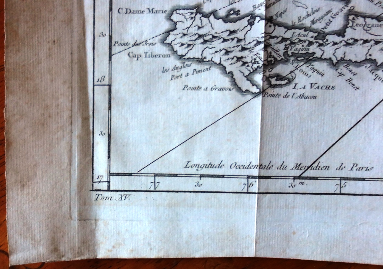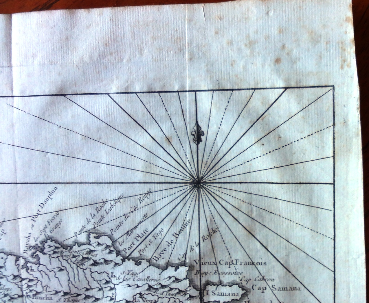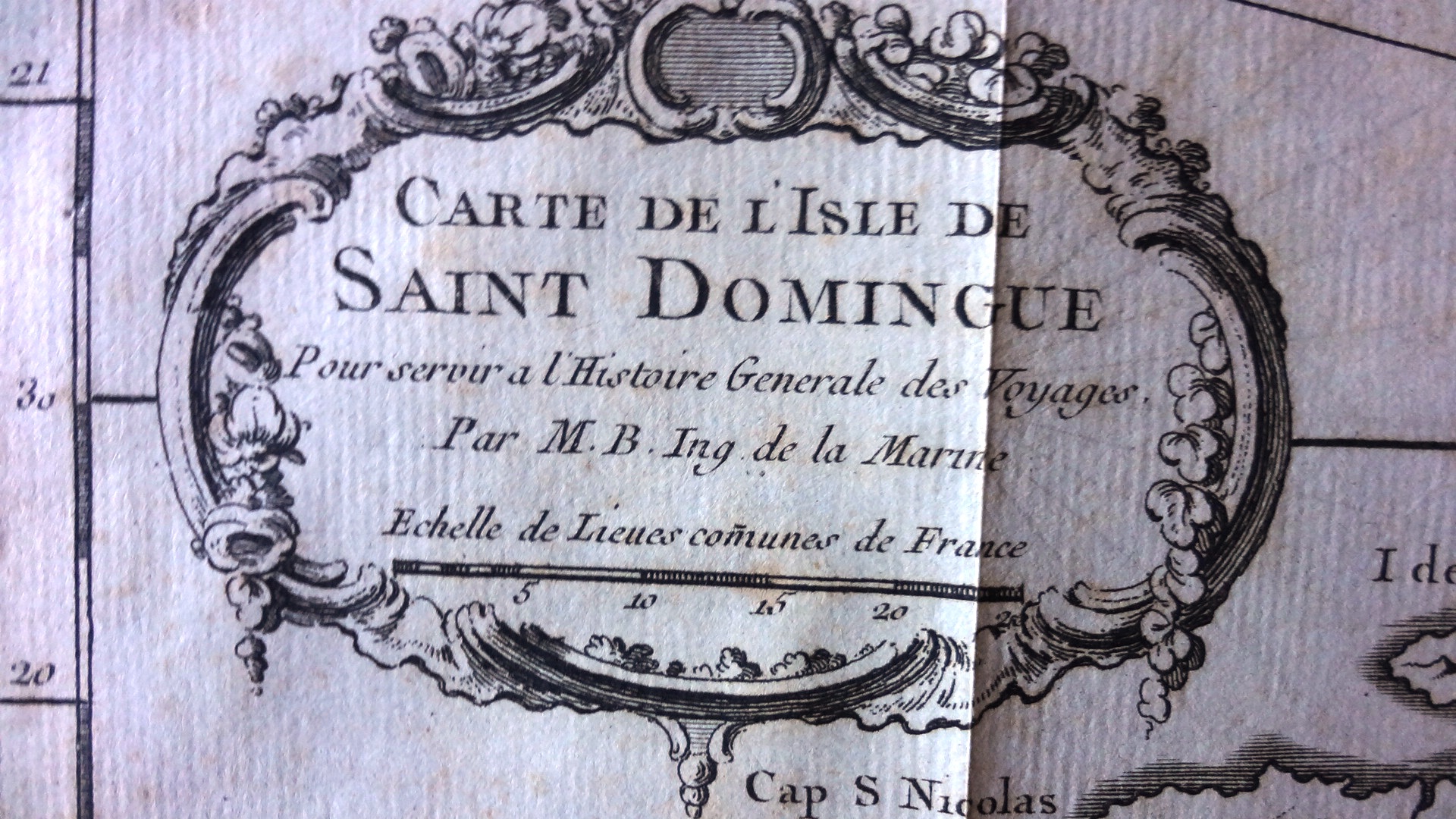 Engraved map of the Island of Hispaniola in the Caribbean Sea. Leaf measures 10.5 by 13 inches.