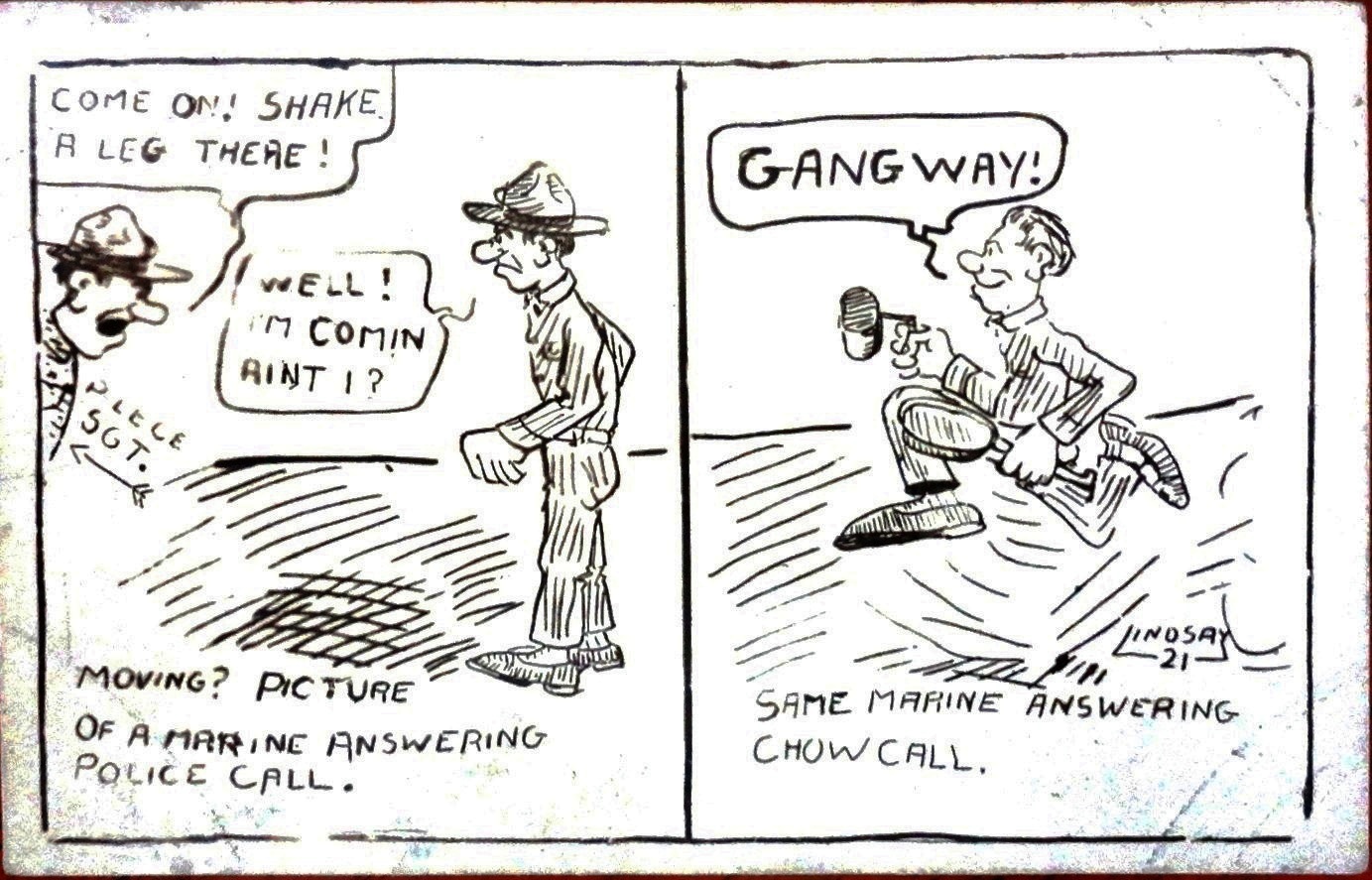 Black and white post card with scenes from the USA Marine Corps occupation of San Domingo in 1916-24. Dimension is 3.5 by 5.5 inches.