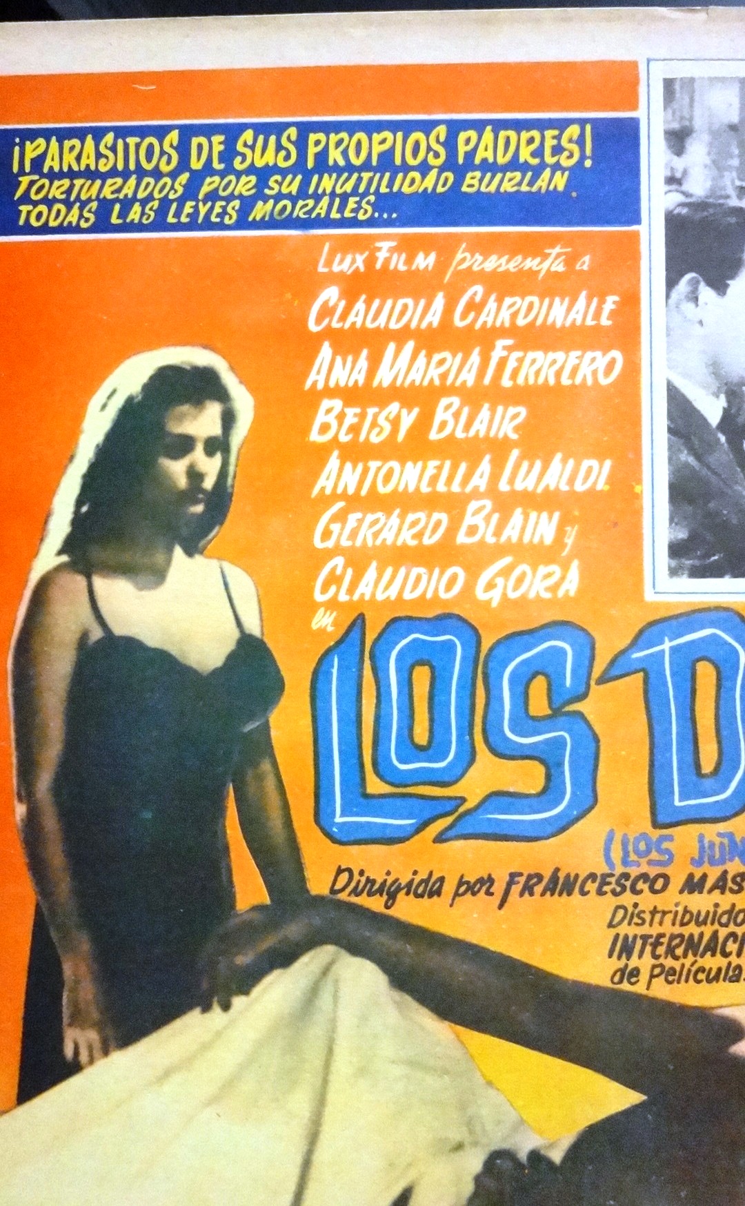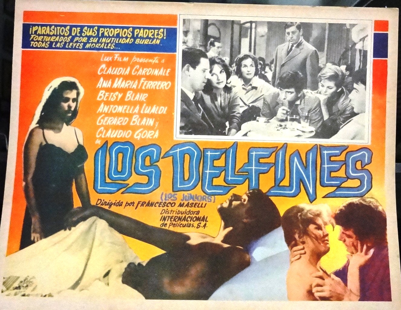 For the film "Los Delfines" with Claudia Cardinale, Ana Maria Ferrero, Betsy Blair and Claudio Gora. Dimension is 12 by 16 inches. In good condition but may have normal wear such as edge wear or a slight pin hole. May have some handling marks and slight soiling along the border in spots, some staining. Wear consistent with the age.