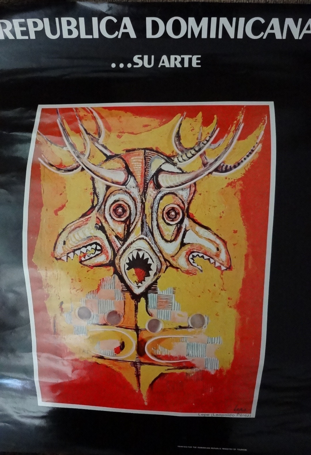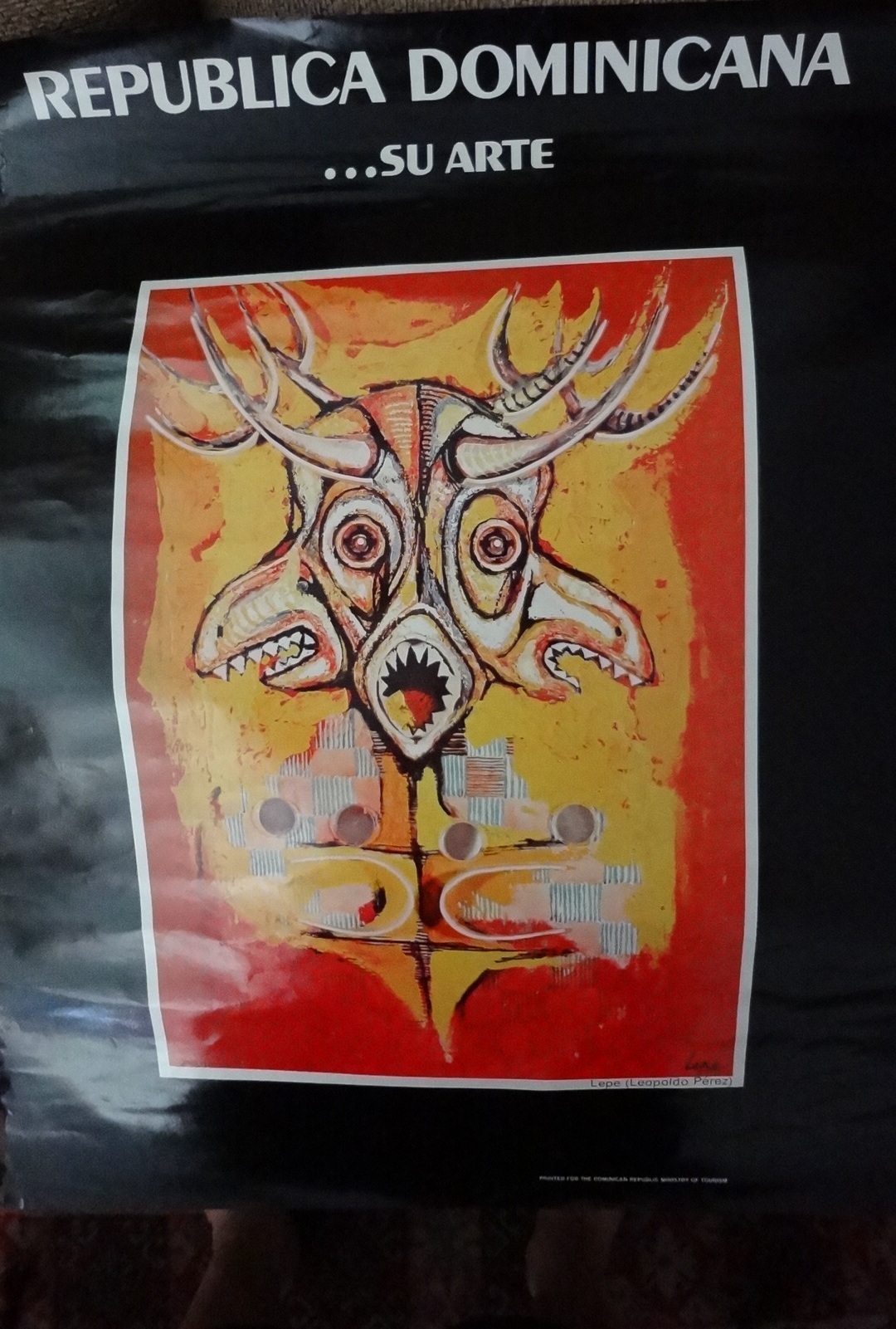 Featuring its famous painters of the time. In this poster we can see a work of art by Lepe (Leopoldo Perez). Size is 18 by 24 inches. In very good condition but may have normal wear such as edge wear or a slight pin hole. May have some handling marks and slight soiling along the border in spots, some staining. Wear consistent with the age. No frame.