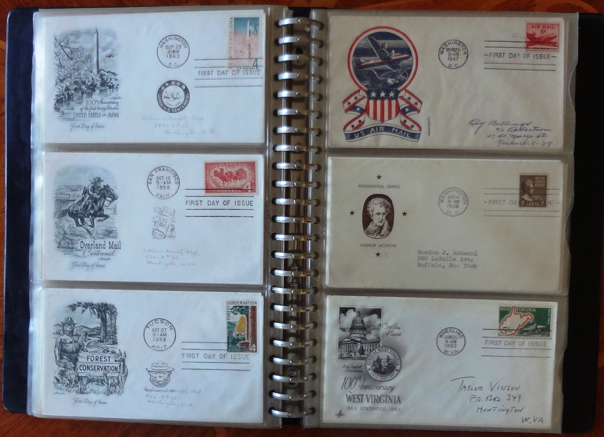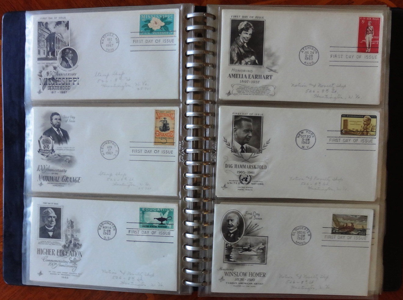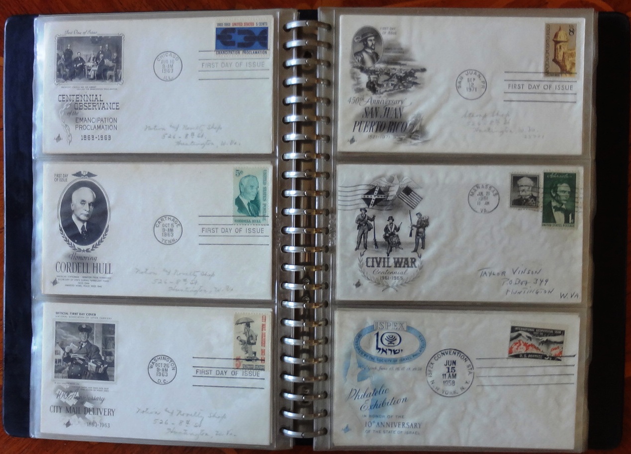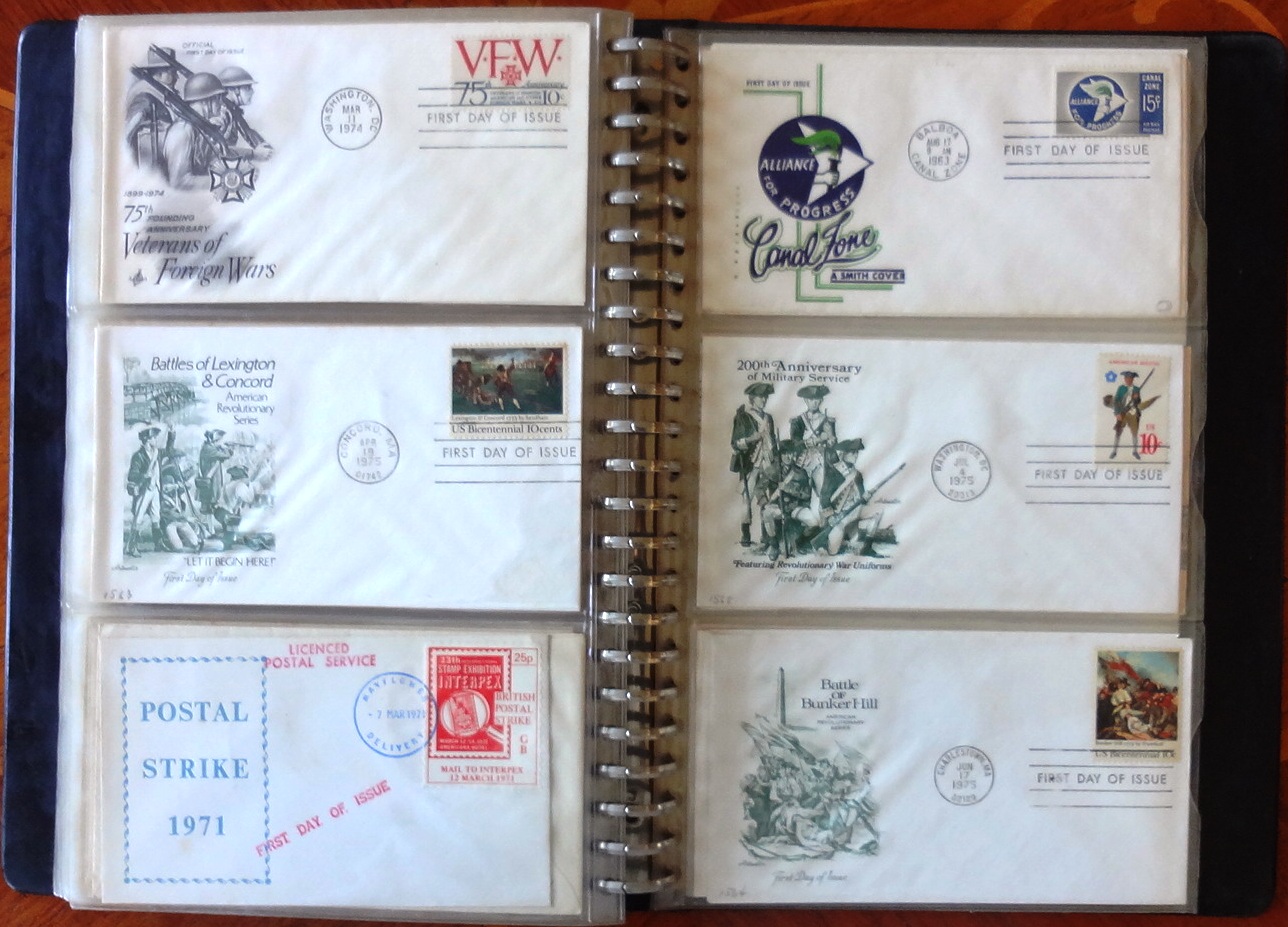 Colección de sobres del Primer Día de Emisión de Estados Unidos. Hay 84 cubiertas a partir del año 1971 en adelante. En una cubierta del álbum con tapas negras y respaldo negro, de plástico transparente protegidos con cubiertas y 3 por lado. La mayoría de las FDC con direcciones, algunos sin dirección. La mayoría tienen sellos, algunos en color.