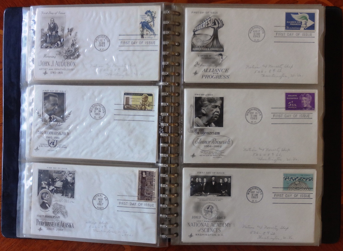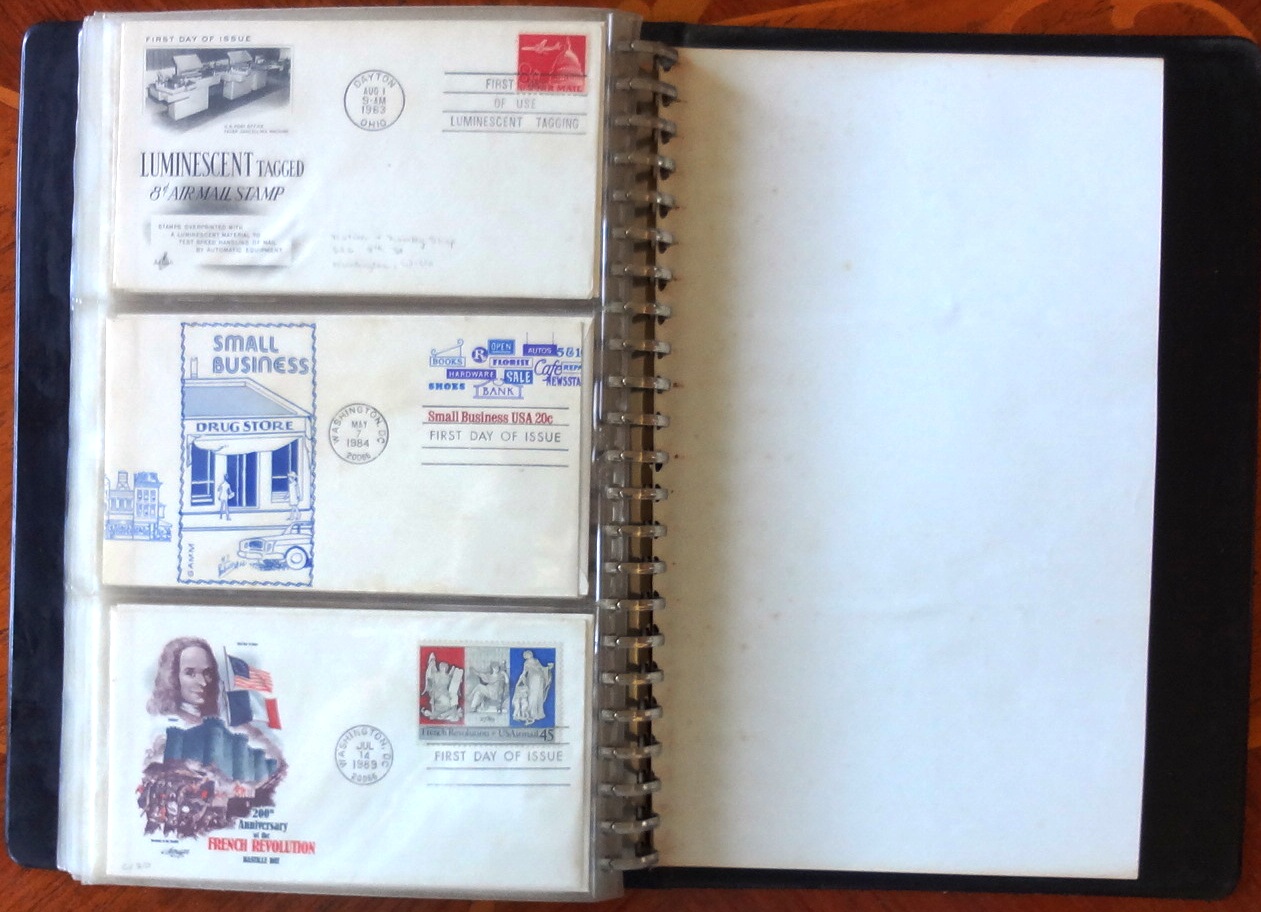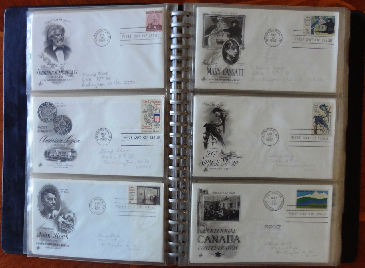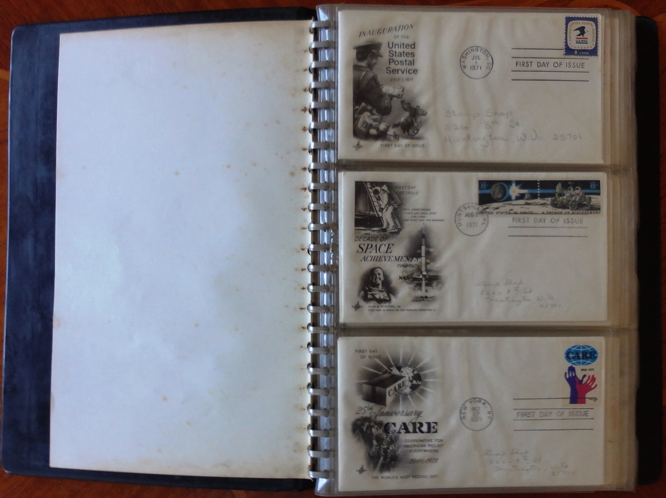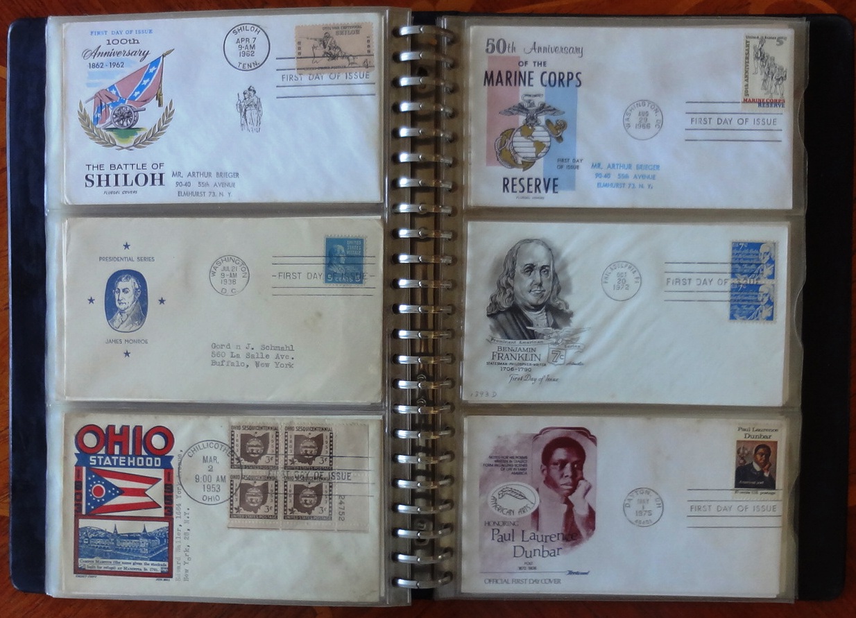 Colección de sobres del Primer Día de Emisión de Estados Unidos. Hay 84 cubiertas a partir del año 1971 en adelante. En una cubierta del álbum con tapas negras y respaldo negro, de plástico transparente protegidos con cubiertas y 3 por lado. La mayoría de las FDC con direcciones, algunos sin dirección. La mayoría tienen sellos, algunos en color.