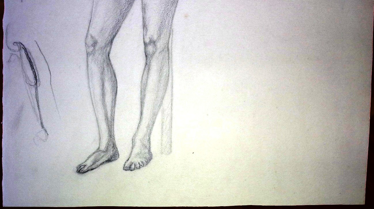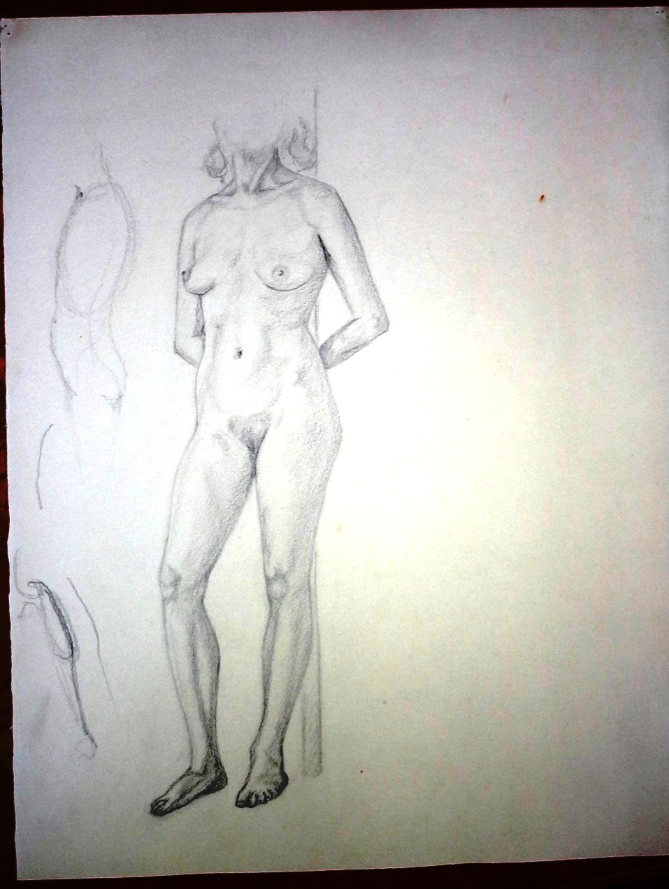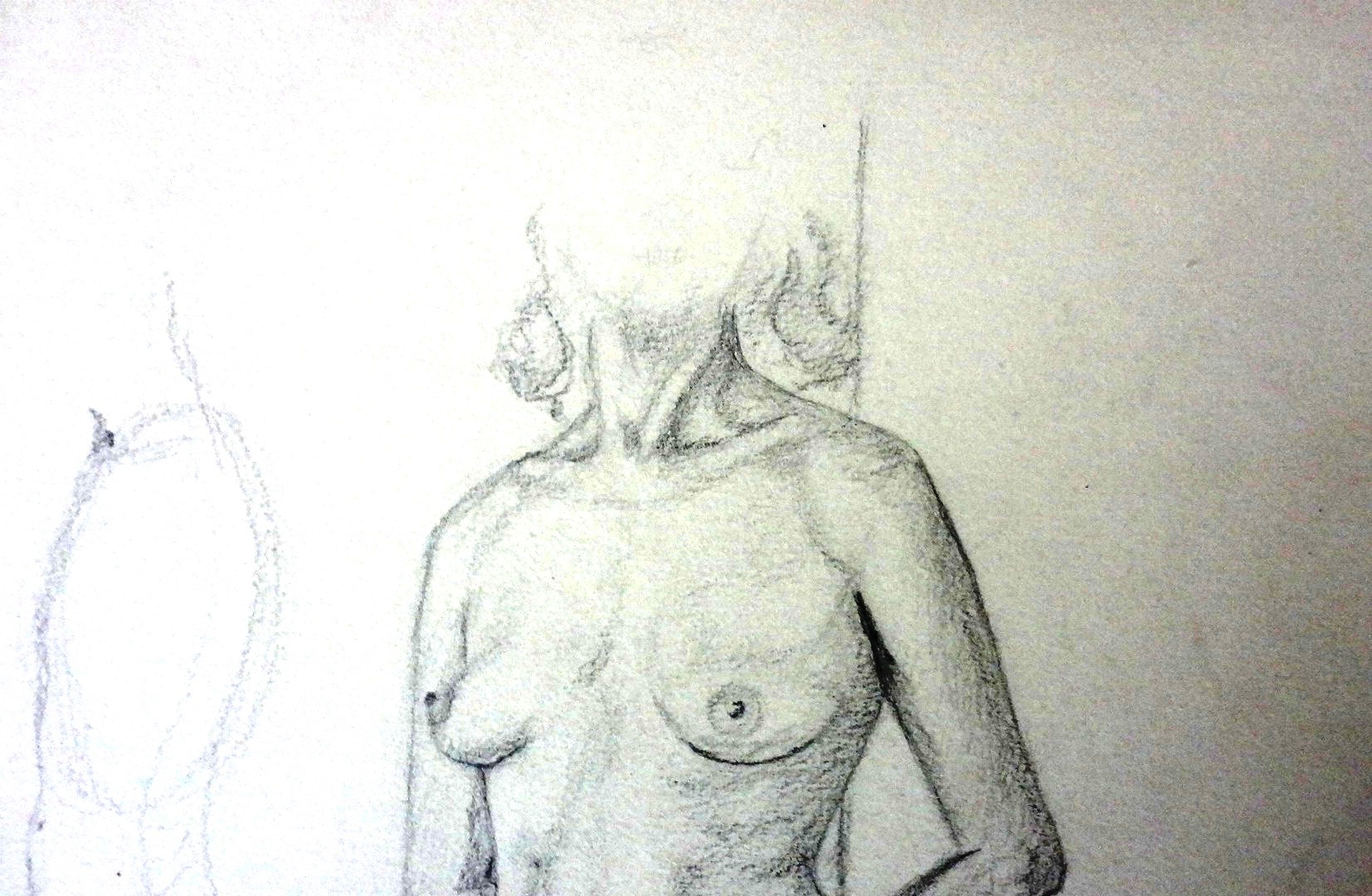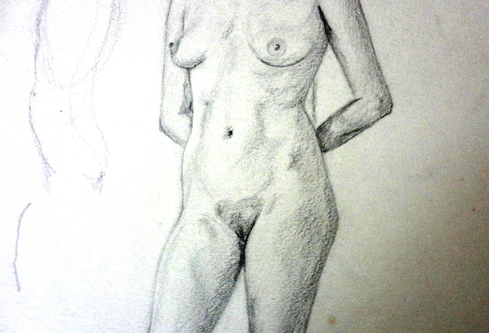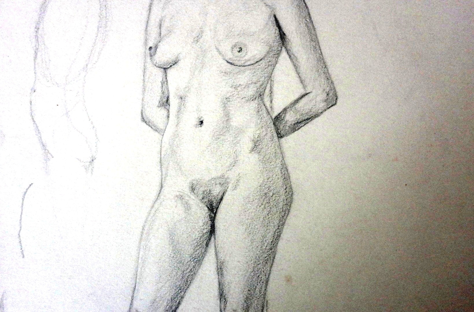 Boceto sobre papel con una mujer desnuda recostada de una pared, con una dimensión variada. Sin firmar ni fechado. Sin marco.