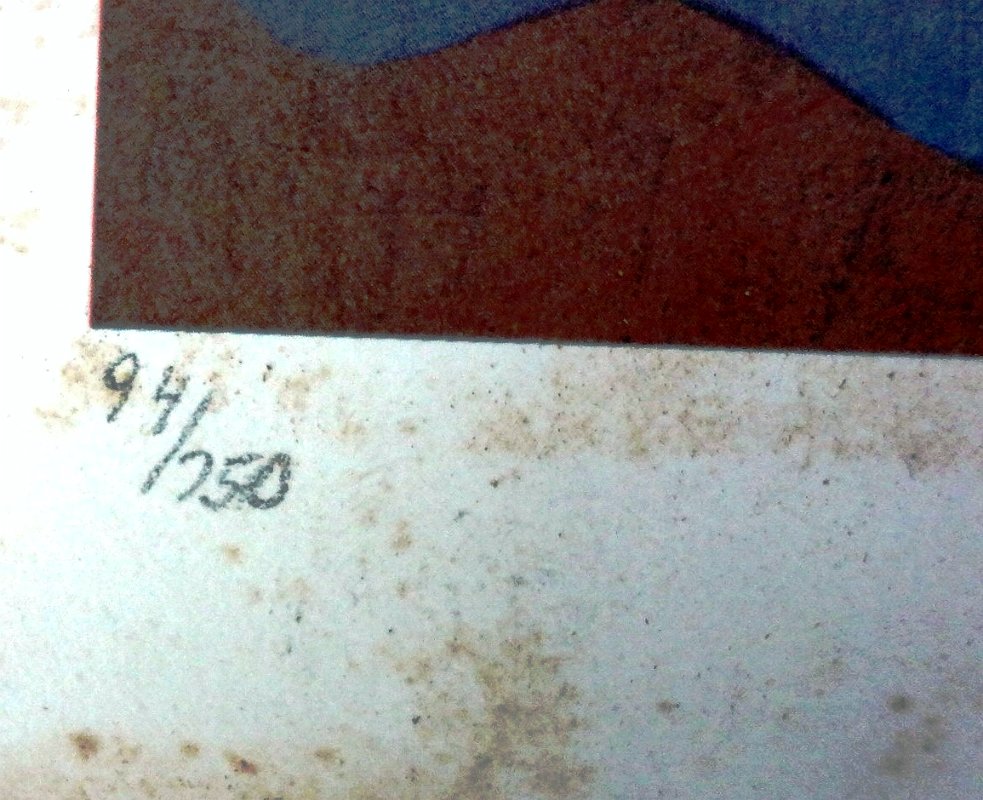 DSC00767 Original print in commemoration of the United Nations. Paper size is 8.5 by 11 inches. Signed and dated 1989 in pencil in the lower right side. Numbered 205/750. No frame. Impreso original en commemoración de las Naciones Unidas. El tamaño del papel es 8.5 por 11 pulgadas. Firmado con lápiz y fechado 1989 en el lado derecho inferior. Numerado 205/750. Sin marco.
