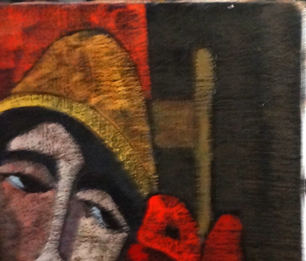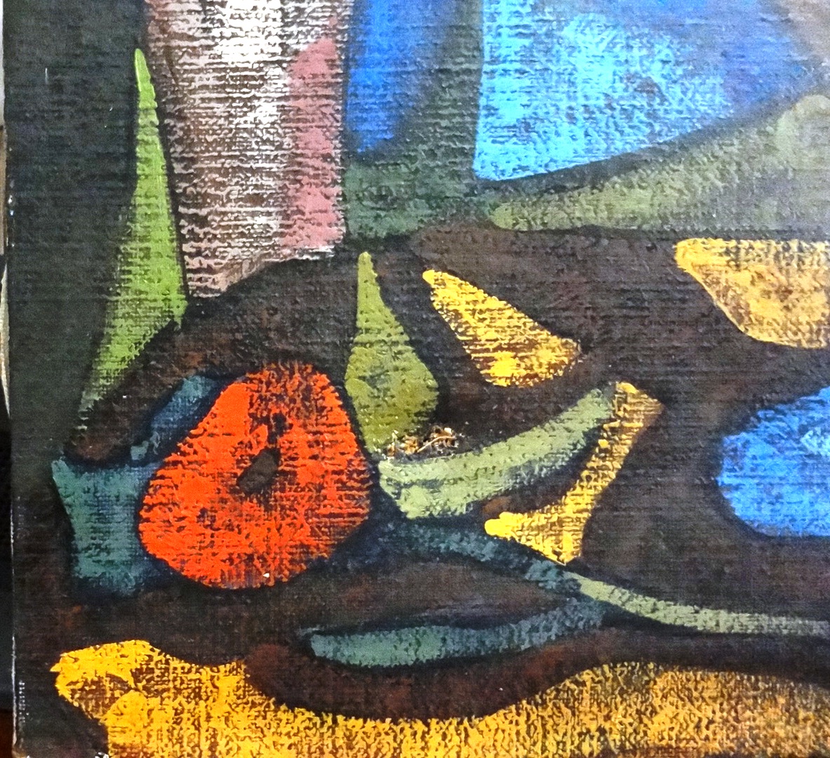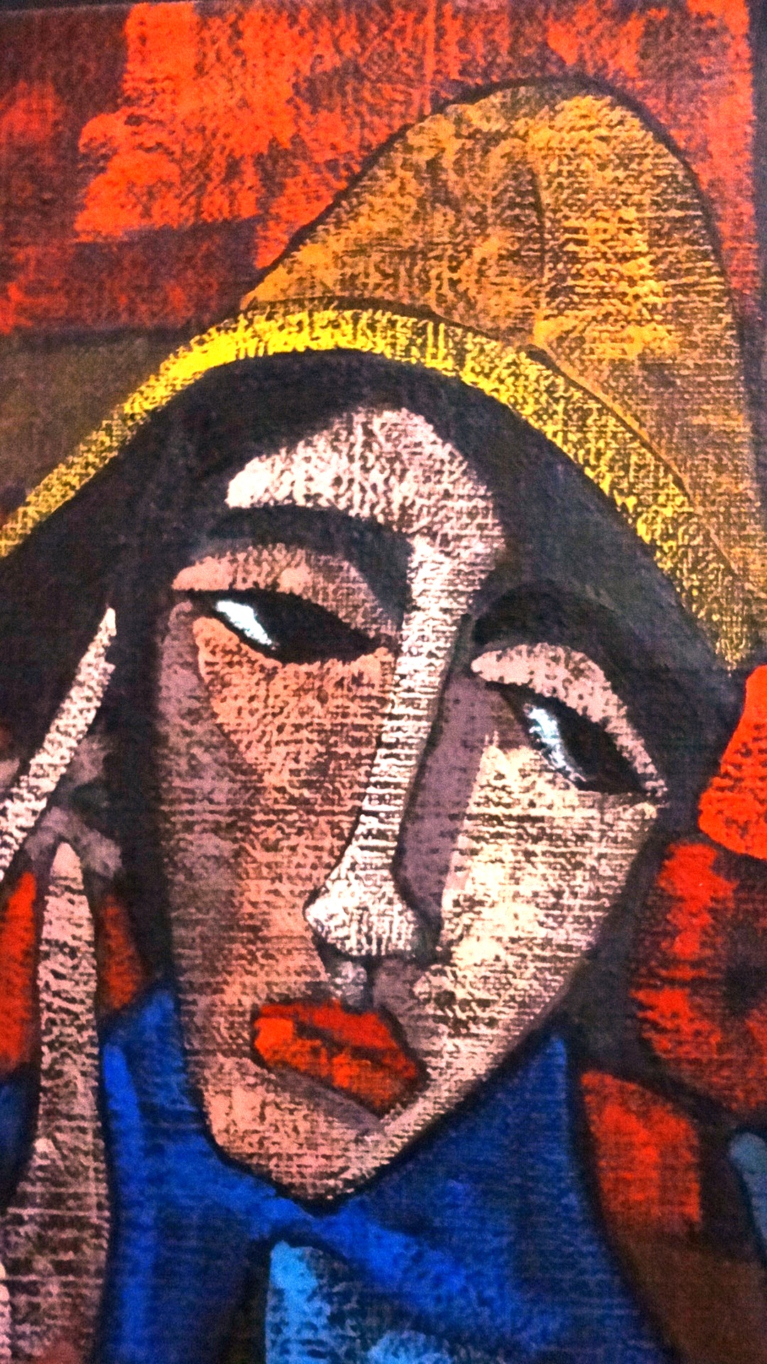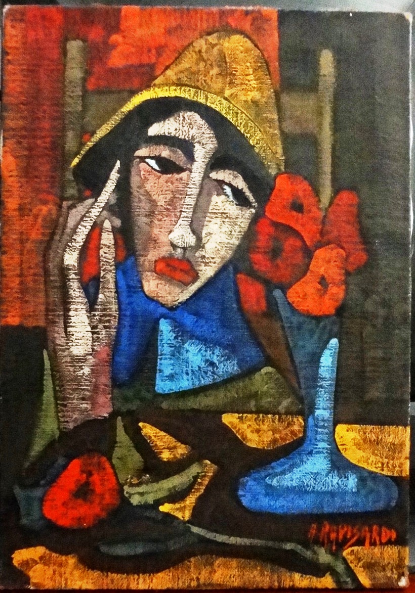 Excelente pintura expresionista en oleo sobre cartón, representando una cara y con una dimensión de 14 x 20 pulgadas. Firmada en rojo en la parte superior izquierda. Sin marco.