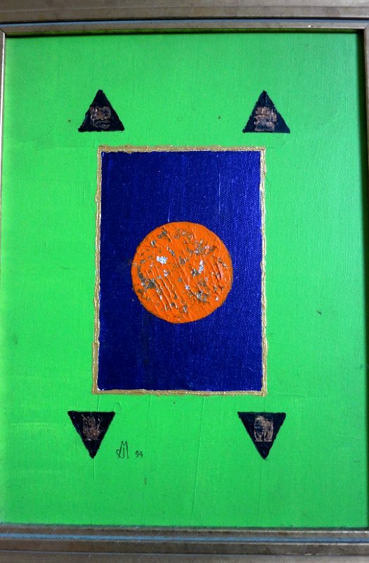 Excellent abstract oil on canvas with a dimension of 9 by 12 inches. Signed and dated 1994 in the lower left side. No frame. Excelente óleo abstracto sobre tela. La dimensión de la tela es 9 por 12 pulgadas. Está firmado y fechado con el año 1994 en el lado inferior izquierdo. Sin marco.