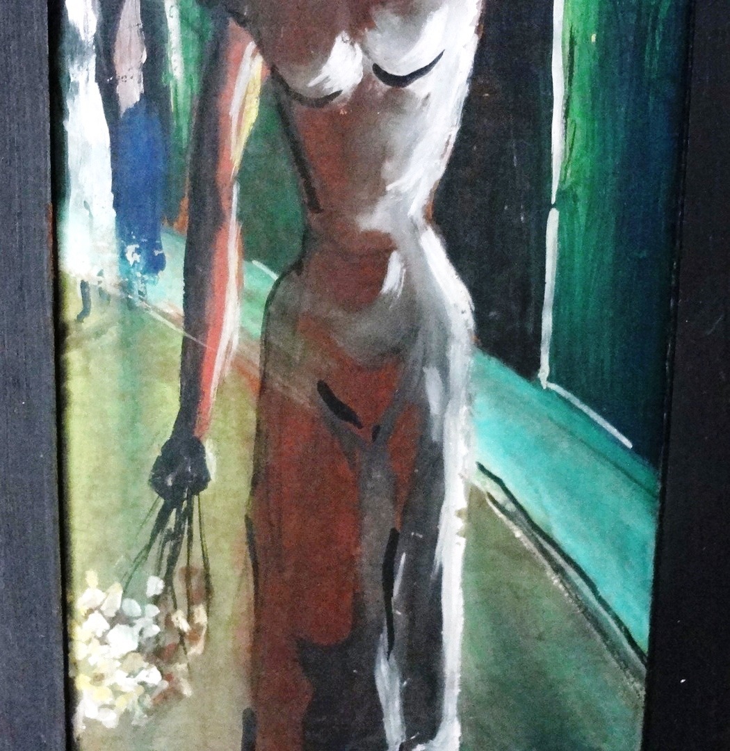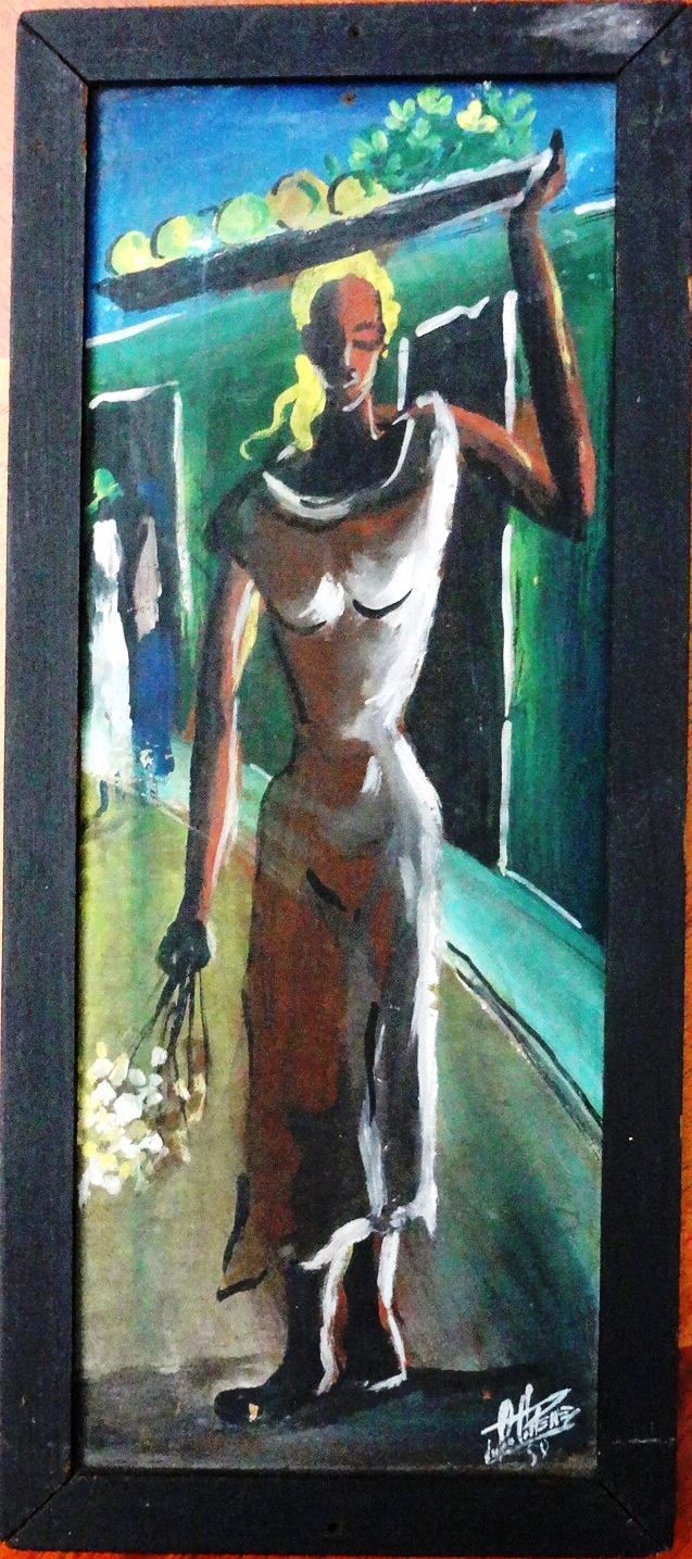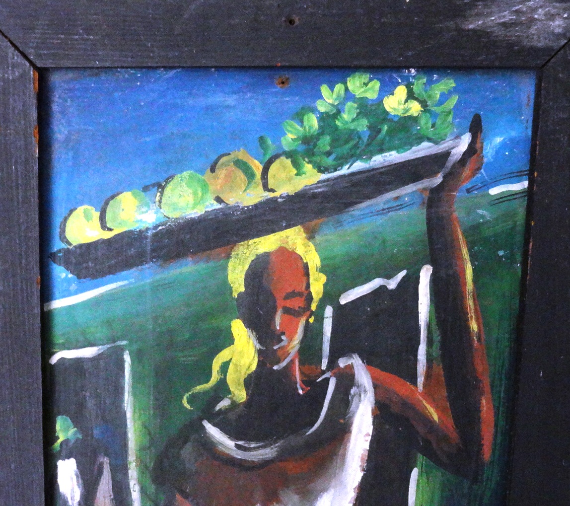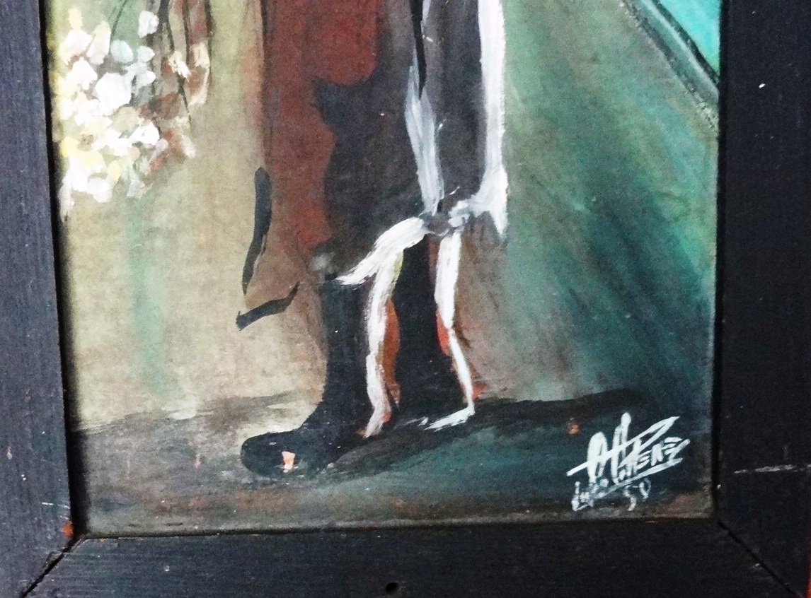 Two watercolor on board showing a man and a woman in a rural area. Dimension is 5 by 13.5 inches. Signed and dated in white the lower right side. Conjunto de…