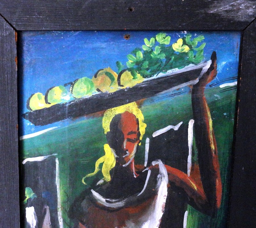 Two watercolor on board showing a man and a woman in a rural area. Dimension is 5 by 13.5 inches. Signed and dated in white the lower right side. Conjunto de dos acuarelas sobre carton con un hombre y una mujer. Dimension es 5 por 13.5 pulgadas. Firmado y fechado en blanco en la parte inferior derecha.