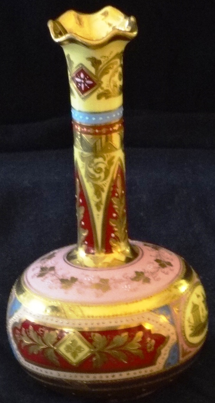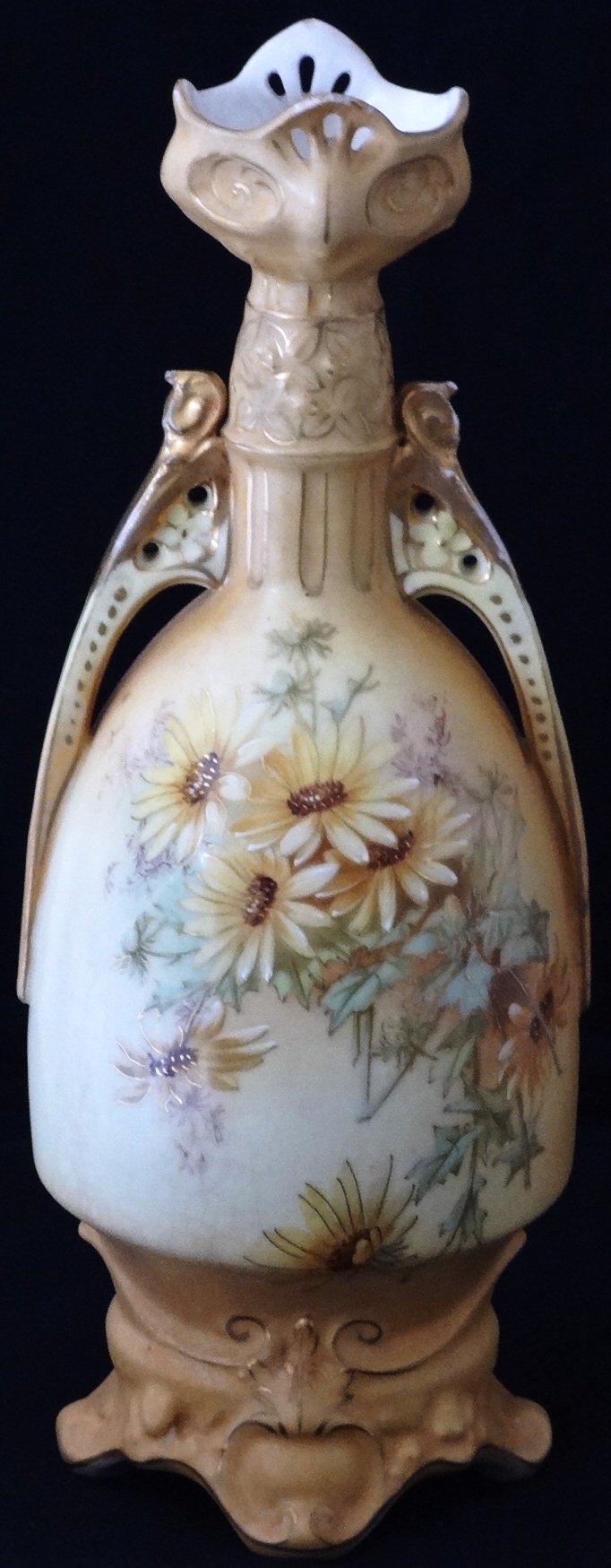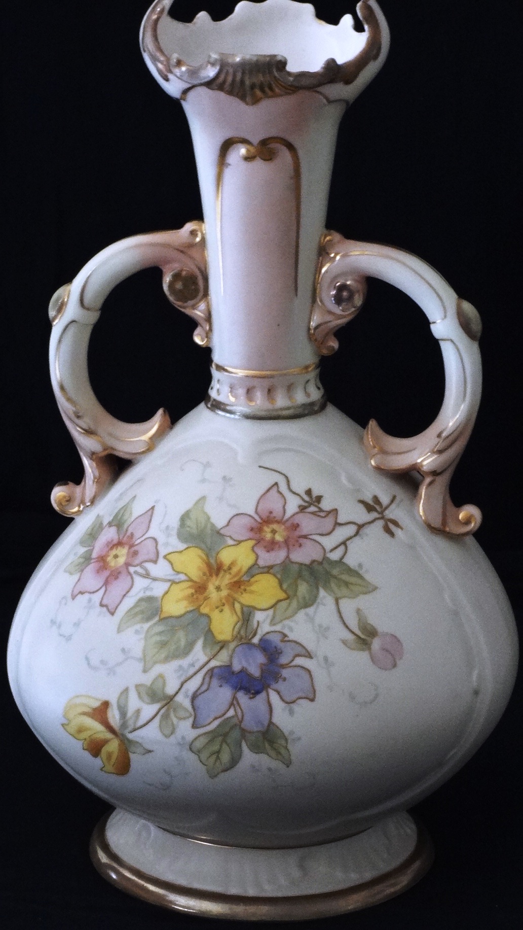 Robert Hanke with a hand painted in light brown color and flowers of different colors in the center, and with a size of 12 inches high. Robert Hanke de color…