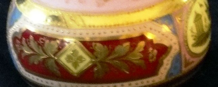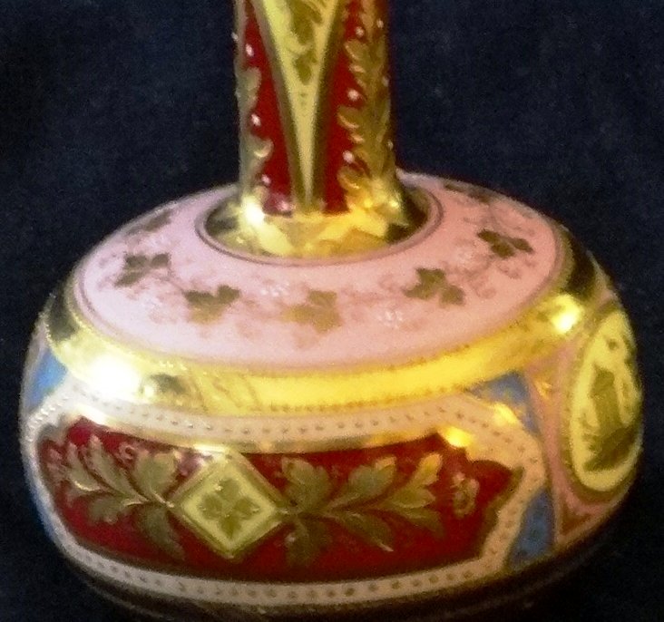Beehive with a small jar hand painted in gold, pink and yellow, and with a size of 6 inches high. Beehive con pequeña pieza pintada a mano con relieve de color…