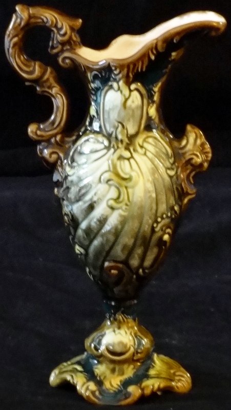 Small jar hand painted in brown color, and with a size of 6 inches high. Pequeño jarron pintado a mano de color marrón, y un tamaño de 6 pulgadas de altura.