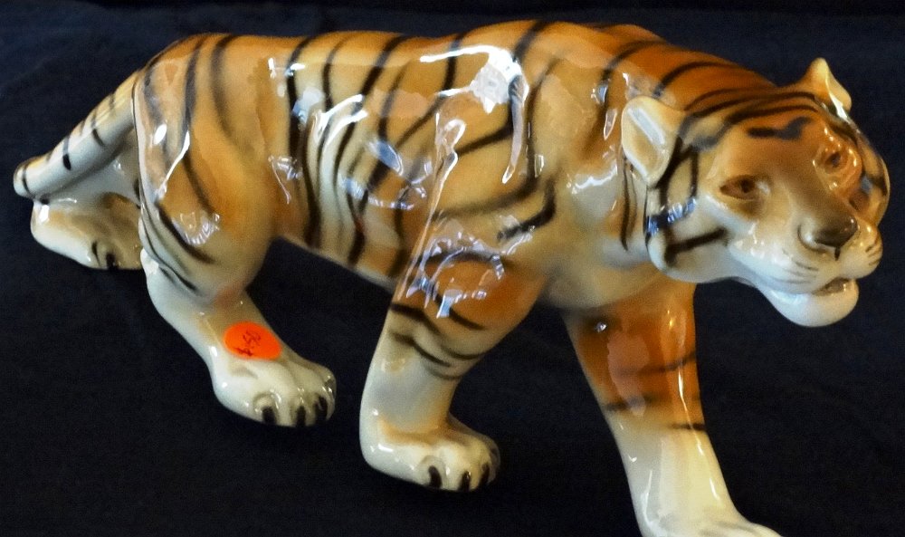 Royal Dux with an excellent midsize walking tiger and with a size of 10 inches in length. Royal Dux con un tigre caminando y de mediano tamaño con 10 pulgadas de largo.