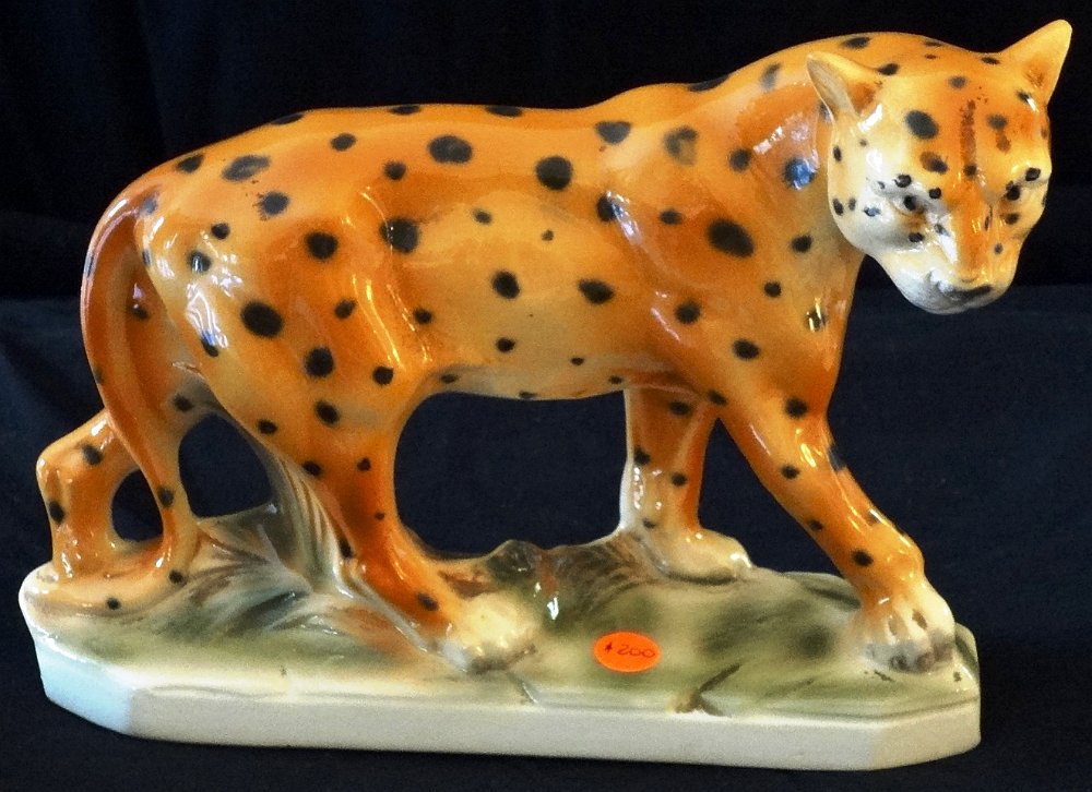 Sitzendorf with an excellent leopard with original orange like color and black spots. Size is 8 inches long and 4 inches tall. Sitzendorf con un leopardo de color anaranjado con puntos negros, y con un tamaño de 8 pulgadas de largo y 4 de alto.