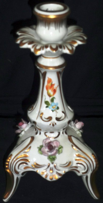 Lidner hand decorated with flowers in relief and gold borders, and a size of 8 inches high. Lidner con decoración de flores en relieve y bordes en color oro, y un tamaño de 8 pulgadas de alto.