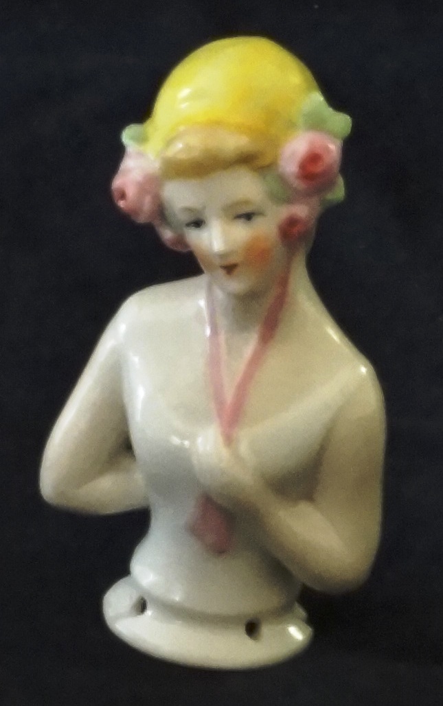 A blonde woman with roses on her hair for a cushion or pillow pin holder, with a size of 3 inches high. Mujer con pelo rubio y rosas para una almohada porta…
