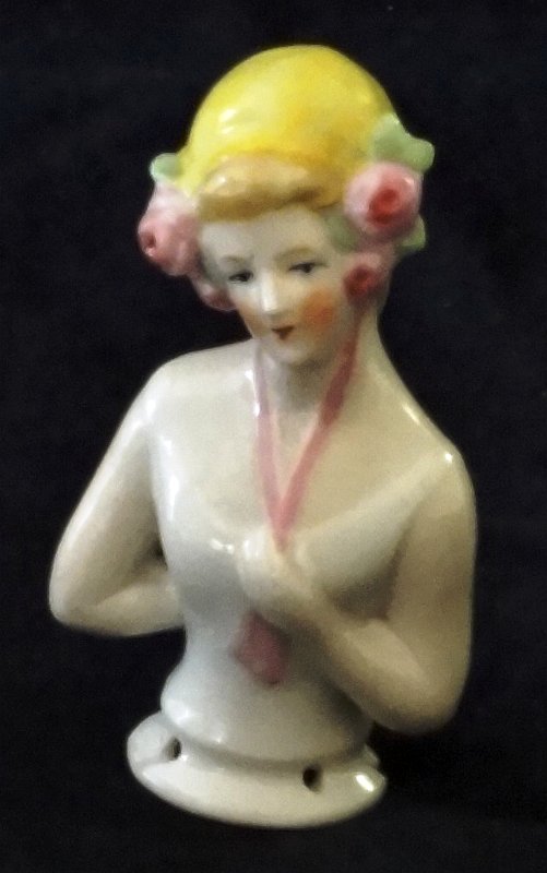 A blonde woman with roses on her hair for a cushion or pillow pin holder, with a size of 3 inches high. Mujer con pelo rubio y rosas para una almohada porta alfileres de 3 pulgadas de alto.