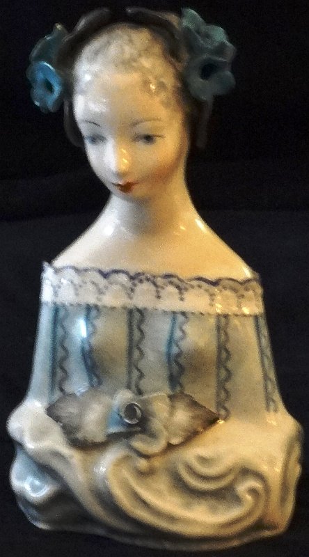 Cordey a woman bust with a classic green dress and flowers in her head, with a size of 6 inches high. Cordey un busto de mujer en traje clásico verde con flores en la cabeza, con un tamaño de 6 pulgadas de alto.