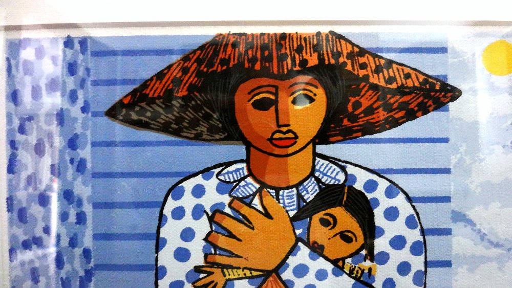 Excellent original colored lithograph of a women peasant with a blue dress and a small child on her arms. Dimension is 9 by 12 inches. Signed and dated 1997 in the middle left side. No frame. The pictures were taken from behind a glass so you may see some reflections. Excelente litografía de color original de un campesino mujer y un niño en sus brazos. Dimensión es de 9 por 12 pulgadas. Firmado y fechado 1997 en el lateral media izquierda. Sin marco. Las fotos fueron tomadas desde detrás de un cristal, así que puede ver algunos reflejos.