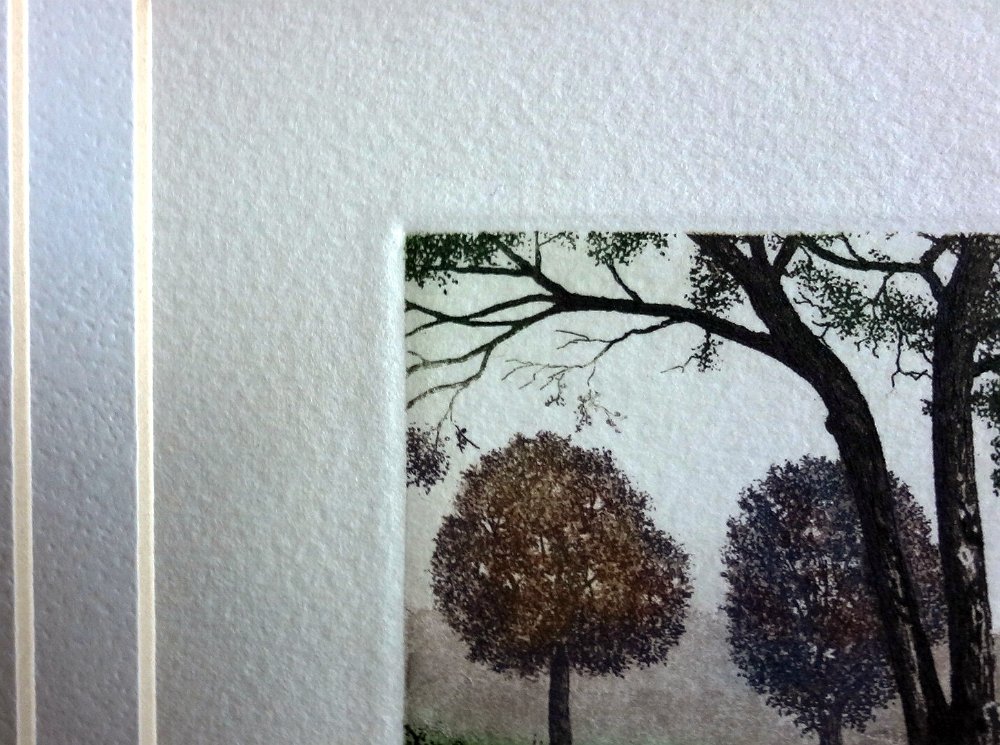 Very beautiful hand colored lithograph with a landscape. Paper dimension is 6.5 by 6.5 inches and image dimension is 3.5 by 3.5 inches. Signed in pencil in the lower right side. Numbered 94/125 and titled "Arrullos". No frame. Muy hermosa litografía coloreada a mano con un paisaje. Dimensión del papel es 6.5 por 6.5 pulgadas y dimensión de la imagen es 3.5 por 3.5 pulgadas. Firmado a lápiz en la parte inferior derecha. Numerada 94/125 y titulada "Arrullos". Sin marco.