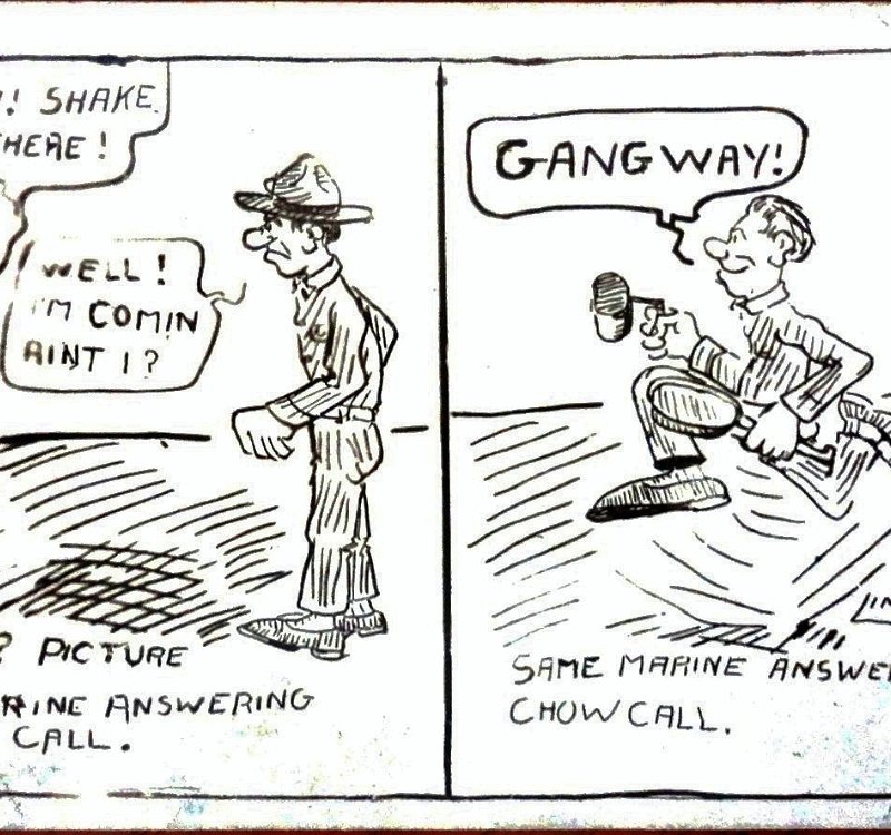 Black and white post card with scenes from the USA Marine Corps occupation of San Domingo in 1916-24. Dimension is 3.5 by 5.5 inches.