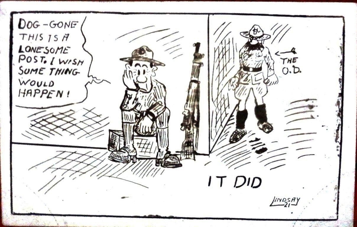 Black and white post card with scenes from the USA Marine Corps occupation of San Domingo in 1916-24. Dimension is 3.5 by 5.5 inches.