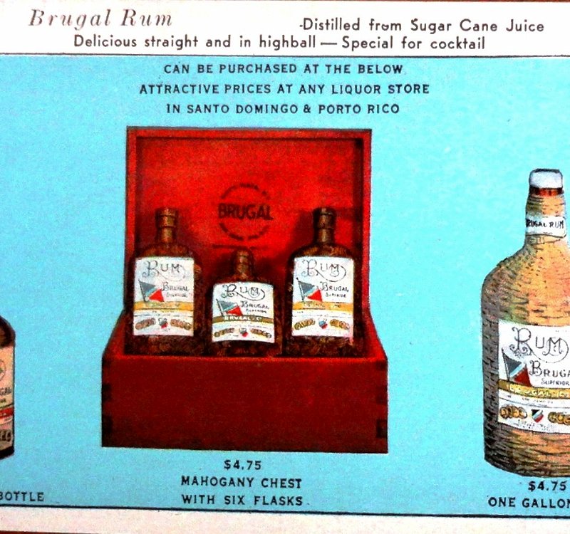 Postal a color con una presentación del ron Brugal de República Dominicana. Dimensión es 4 por 6.5 pulgadas.