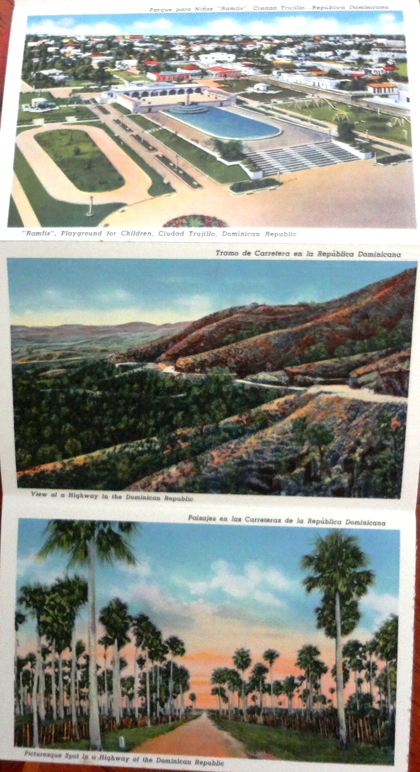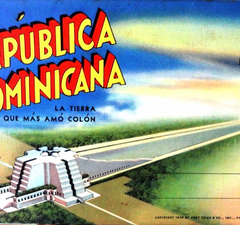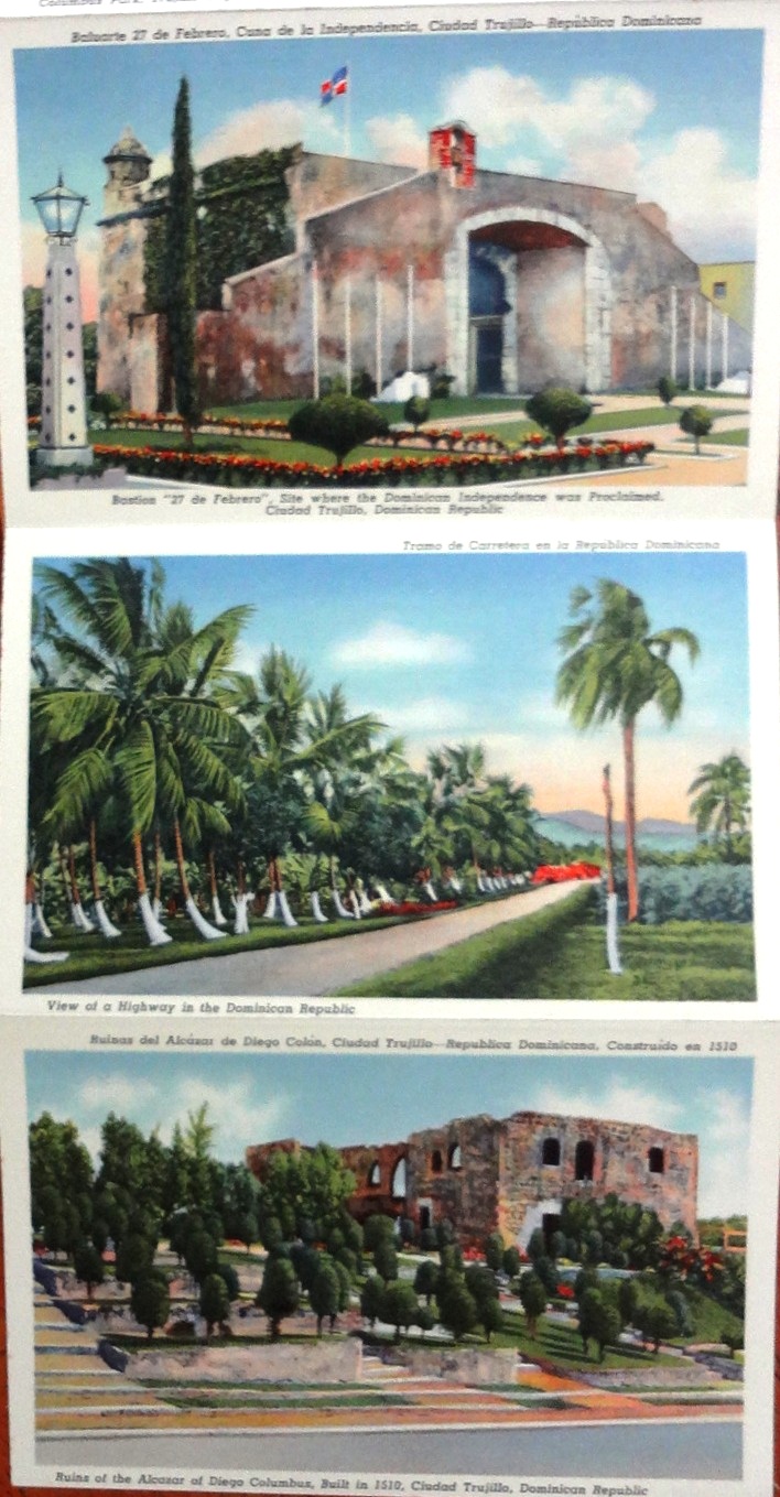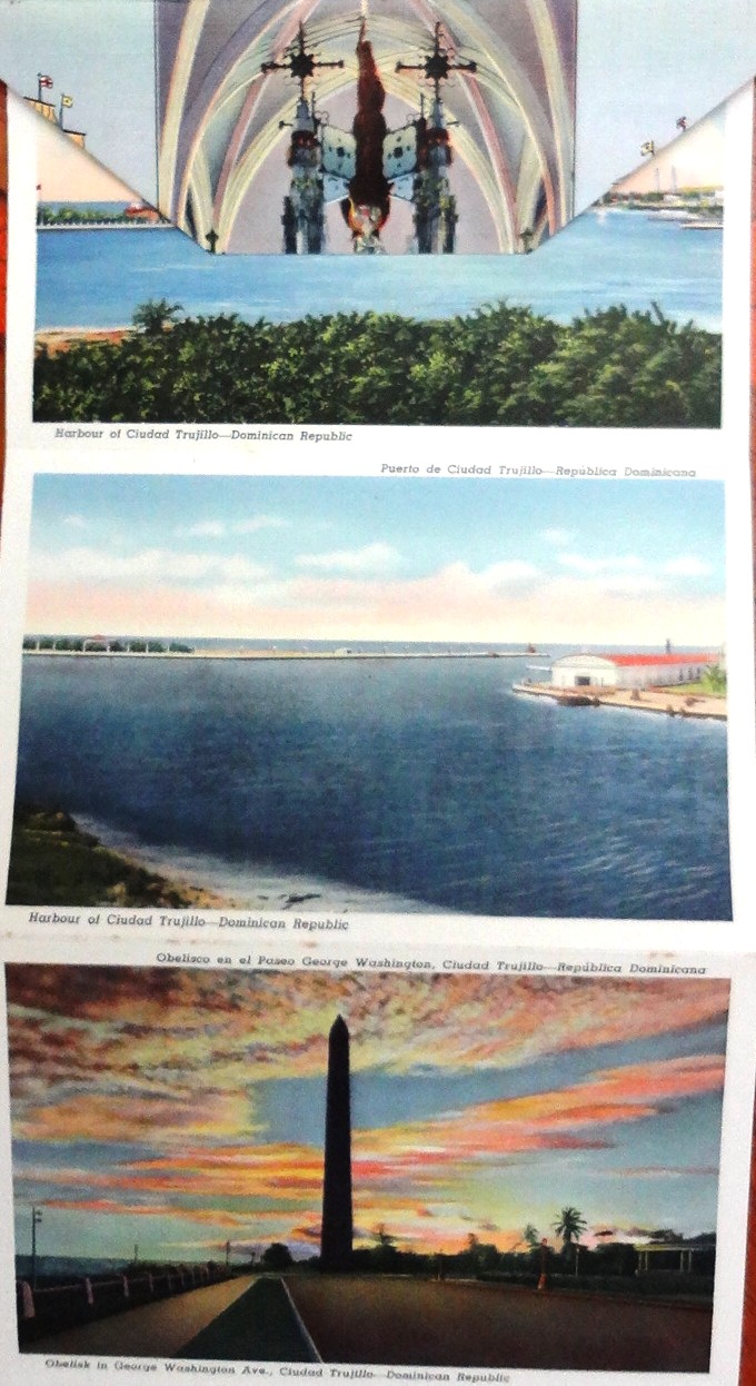 Postal a color con fotos de varias localidades turísticas de la República Dominicana. Dimensión es 3.5 por 5 pulgadas.