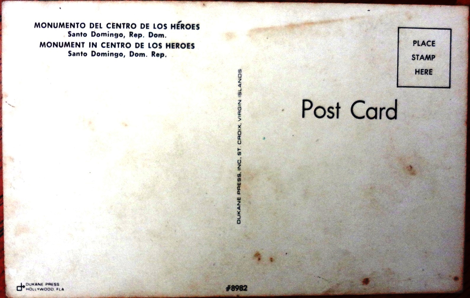 Color post card for the Peace and Confraternity Fair in the years 1955-56 in Ciudad Trujillo. Dimension is 3.5 by 5.5 inches.