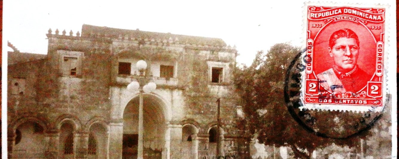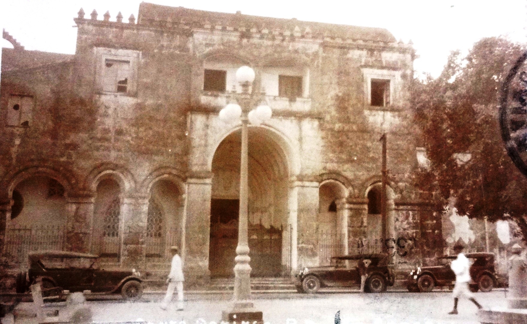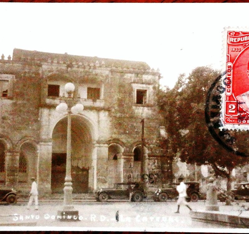 Black and white post card with the First Cathedral of America located in Ciudad Trujillo. Dimension is 3.5 by 5.5 inches.