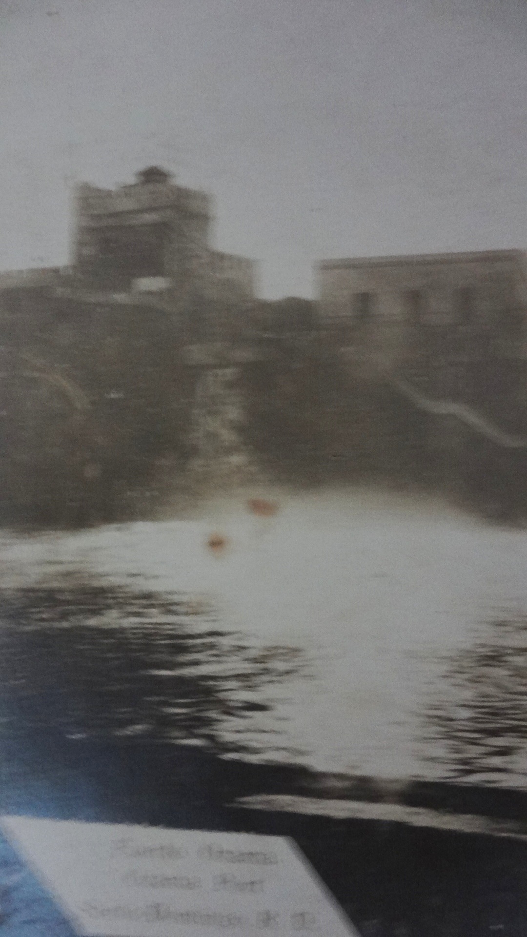 Postal en blanco y negro del Fuerte Colonial localizado en el Rio Ozama en Ciudad Trujillo. Dimensión es 3.5 por 5.5 pulgadas.