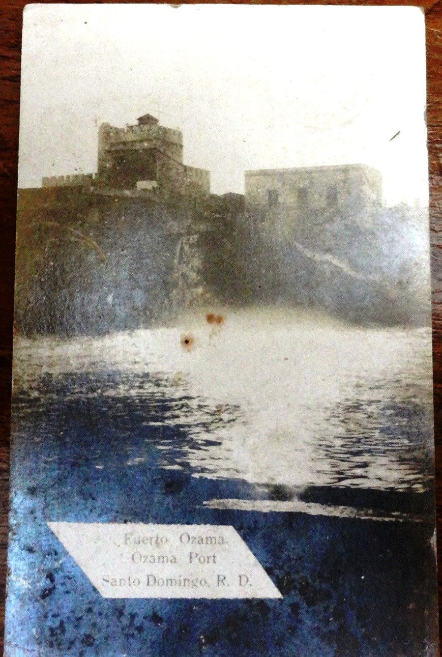 Black and white post card for the Colonial fort located in the Ozama River in Ciudad Trujillo. Dimension is 3.5 by 5.5 inches.