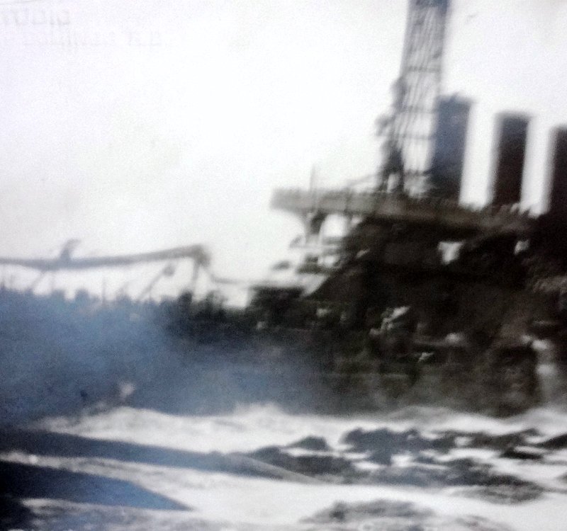 Postal en blanco y negro con el USS Memphis encallado en los arrecifres en San Domingo. Dimensión es 3.5 por 5.5 pulgadas.