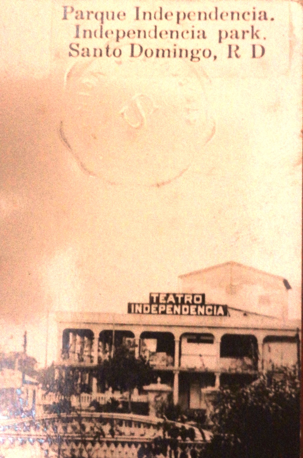 Black and white post card with the Independence Park in the center of the city of Ciudad Trujillo. Dimension is 3.5 by 6 inches.