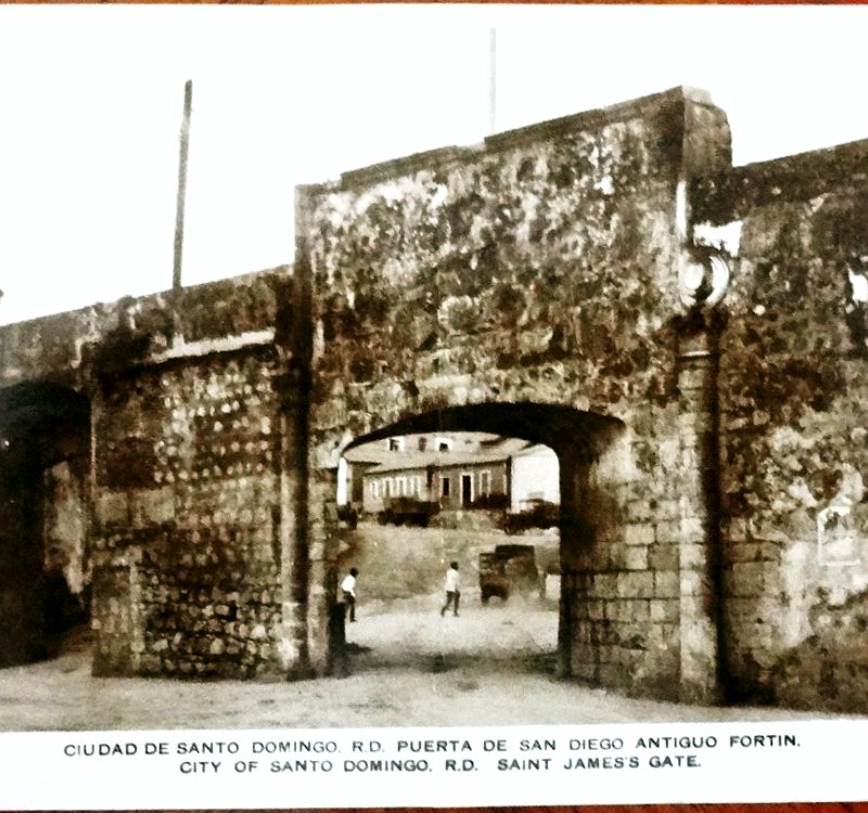 Postal en blanco y negro con la Puerta de San Diego antiguo fortin. Dimensión es 3.5 por 5.5 pulgadas.