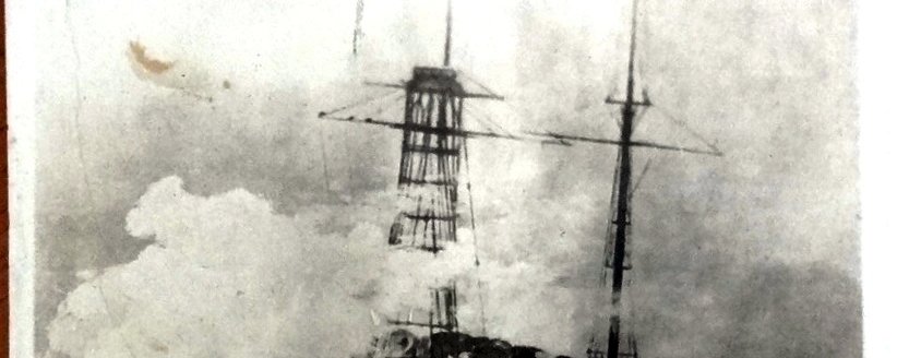 Postal en blanco y negro con el USS Memphis encallado en los arrecifres en San Domingo. Dimensión es 3.5 por 5.5 pulgadas.